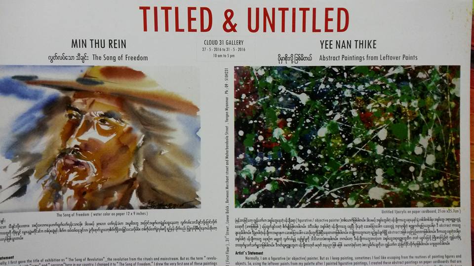 Artists Min Thurein and Yee Nan Thike hold a joint exhibition at Cloud 31 Gallery. Profits will be donated to victims of conflict in Rakhine state. Runs through May 31.