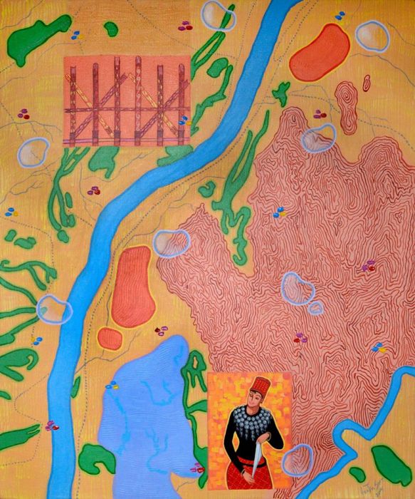 Rich in color and texture, Han Tin Swe’s impressionistic pieces are dreamy landscapes of everyday life, where purple clouds float next to hills of different shades.