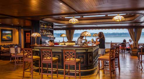 If looking at all that river water makes cruisers thirsty, they can visit Kipling’s Bar on the terrace deck. Pulling up an old-school caned stool and ordering up a classic cocktail of yesteryear would be a mighty fine way to pass an evening while watching the moonlight shimmer off the Irrawaddy… if you’ve got the dough to throw down, that is.