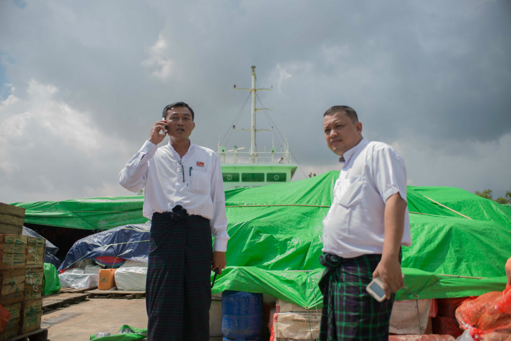 These are two of the candidates, Win Min (on left) and Win Ko Ko Win, waiting around to set sail, or getting in some last-minute cell phone service.