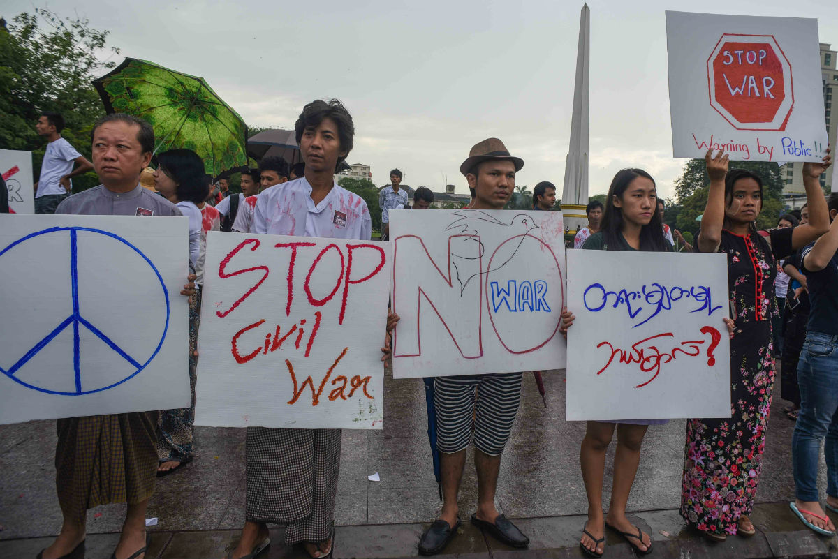 “The public is now doing what they need to do for this. If fighting is not stopping, we need to make a bigger movement. Over a thousand people demanded the same thing a few days ago in Kachin State,” said activist Thet Swe Win, referring to anti-war rallies in the northernmost state about a week ago. “We also should do this in other cities.”