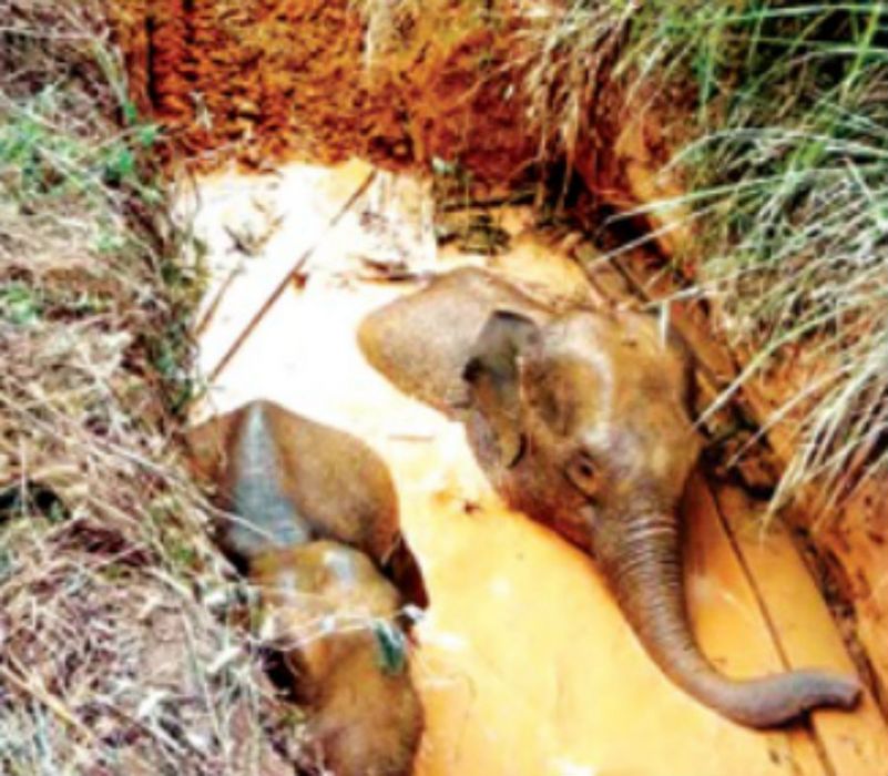 The animals – a three-year-old male and five-year-old female – tumbled into the water, near an oil-palm plantation in Kawthoung District, Tanintharyi Region, while their herd was drinking there.