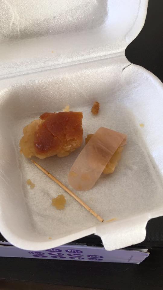 According to her, everything was going great and her colleagues were enjoying the Myanmar potato semolina cake that Mr Lu had bought. It was only when they had nearly finished everything that they found a plaster inside the food.