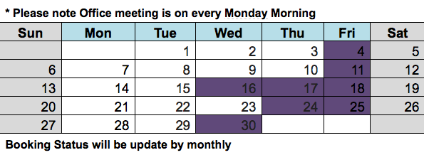 It seems like the organization will release a monthly schedule from now on telling applicants what days are available.