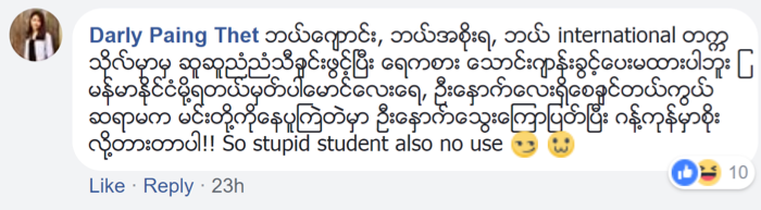 Most of the commenters, somewhat surprisingly, appear to agree with Dr. Witt Yee Hlaing: