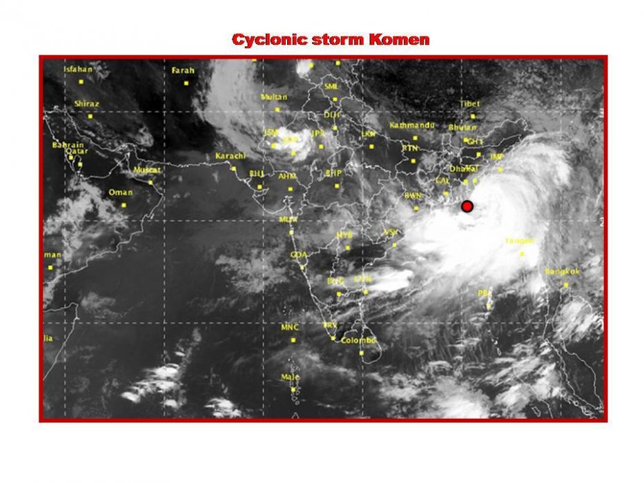 Cyclone Komen battered Myanmar’s coastal Rakhine state on Thursday, with strong winds toppling trees and severing phone lines.