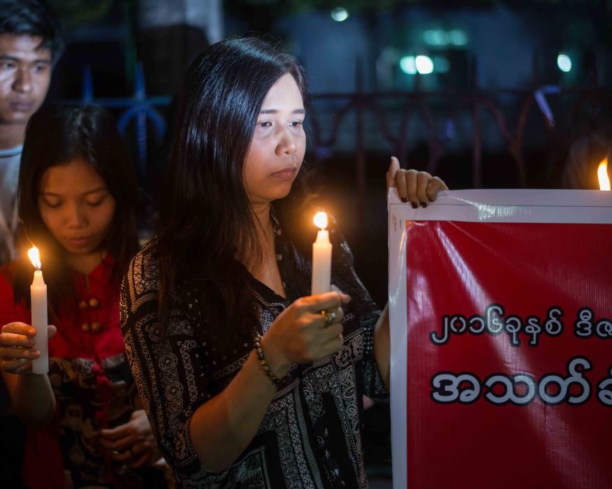 Mourners held candles and signs saying “We will never forget you, Soe Moe Tun”.
