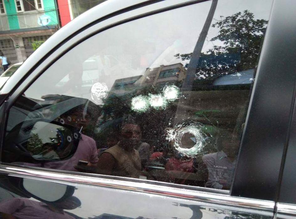 Than Htut Aung was driving home from work at about 6pm when men armed with slingshots opened fire from a nearby taxi.
