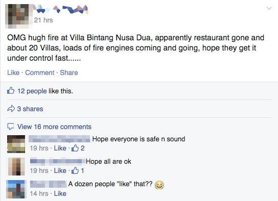 As any other major current Bali topic, the fire has generated some buzz on the Bali Expats Facebook page, but only minimal new information has been offered other than condolences for the incident: