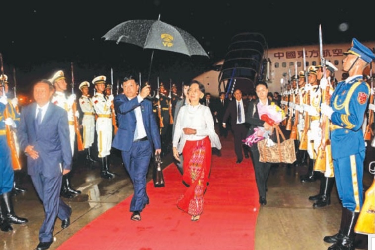 Myanmar’s state counsellor Aung San Suu Kyi flew into Beijing on Wednesday for talks with Chinese president Xi Jinping.