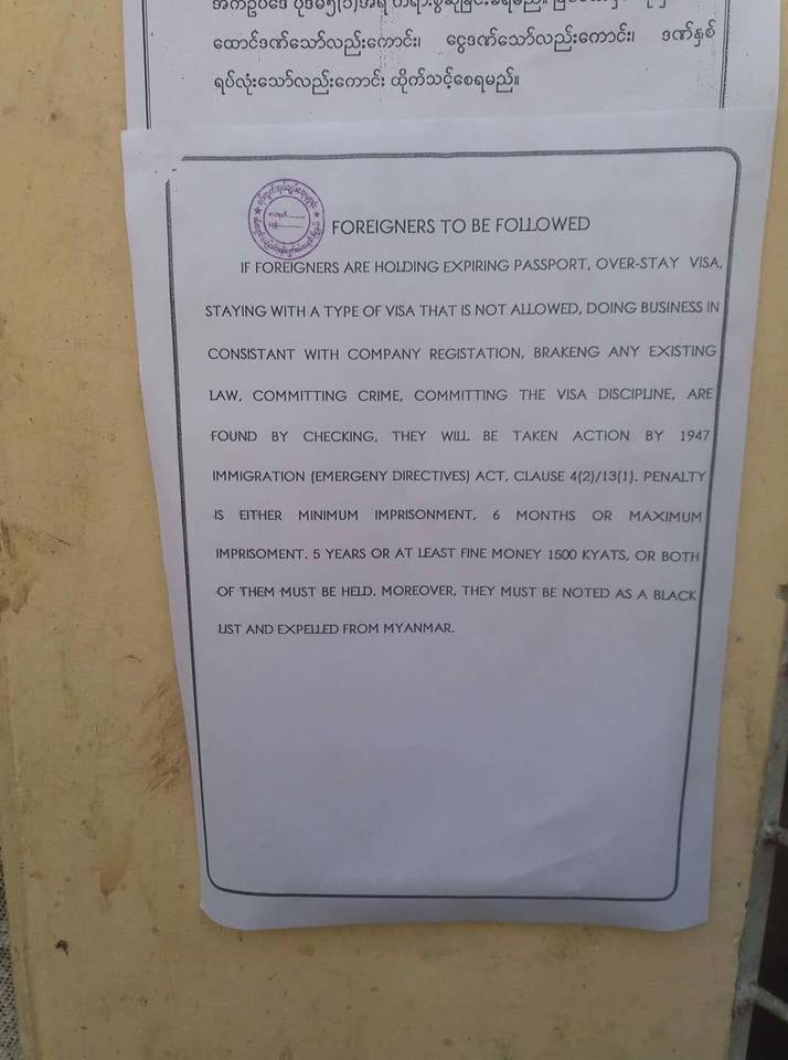 Yangon’s foreign residents received a nice surprise over the weekend as they found notices posted on their apartment buildings titled ‘FOREIGNERS TO BE FOLLOWED.’ Woah, that’s some 1984-level stuff.