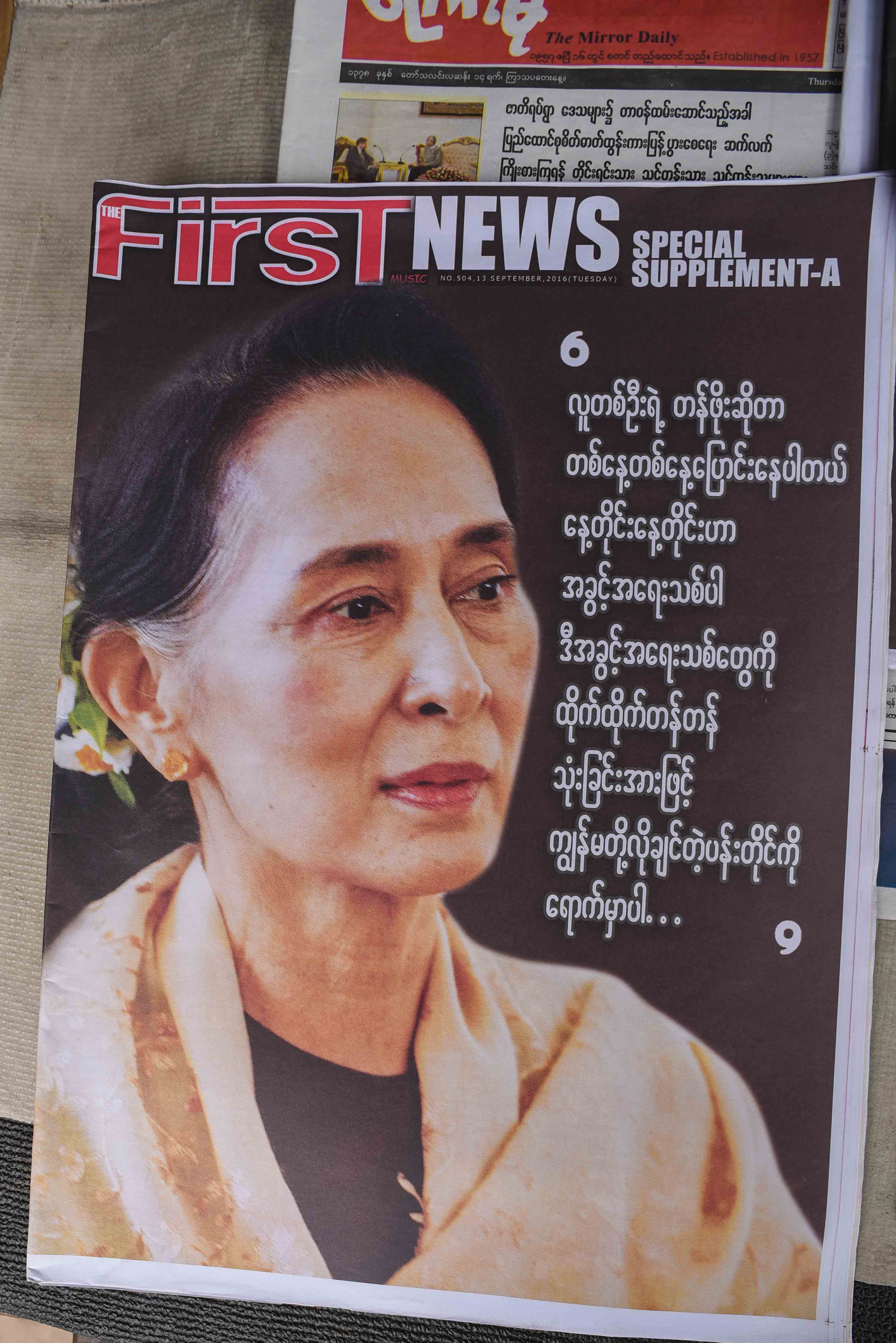 First News went big, with a special supplement and quoting Suu Kyi’s remarks in the US on their front page. She said: “The value of a person changes everyday. So there are new opportunies everday. We will reach our destination by using these new opportunities.”