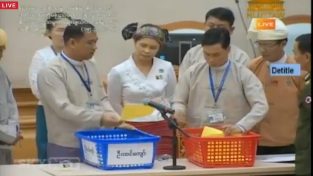 Chin minority candidate Henry Van Thio scored 79 while the military’s pick, Myint Swe, won 213.