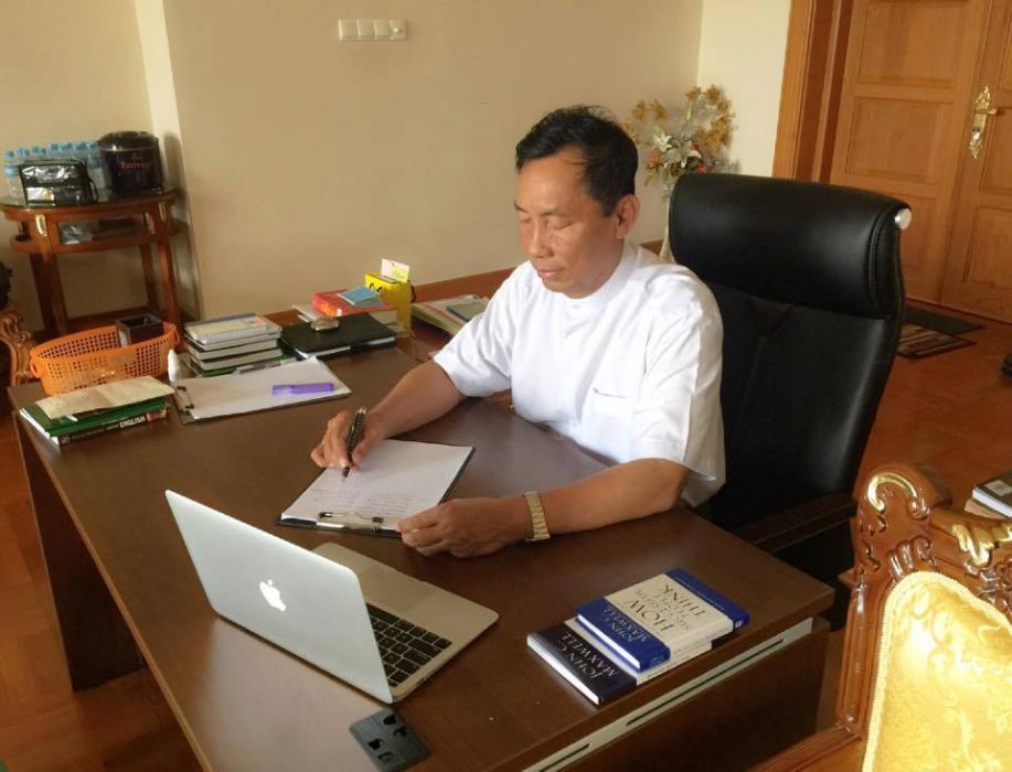 Politician Shwe Mann, right after he was purged from his position as ruling party chair earlier this month. Not. Bothered. (Facebook)