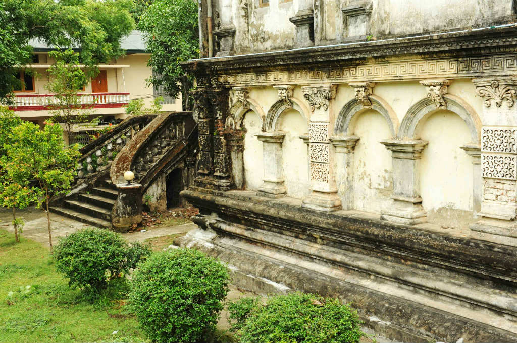 A former meditation hall, the library’s façade bares ornate Corinthian columns ranging from about 1.4 to 3 meters high, a series of decorative arches wrapping around the whole of the lower floor and three sprawling, multi-entrance staircases.