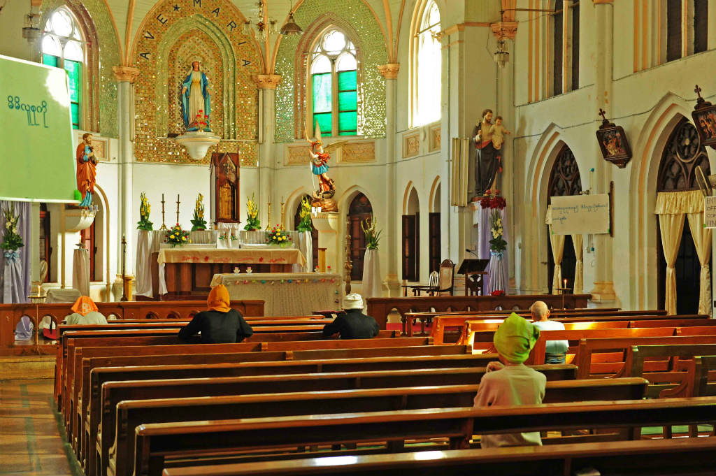 Located a stone’s throw from Kandawgyi Lake in Mingalar Taung Nyunt, the sprawling two story Home for the Aged complex has its own infirmary, split-gender dormitories, dining halls, spacious balconies and at its heart, a sizable chapel with its own interior balcony.
