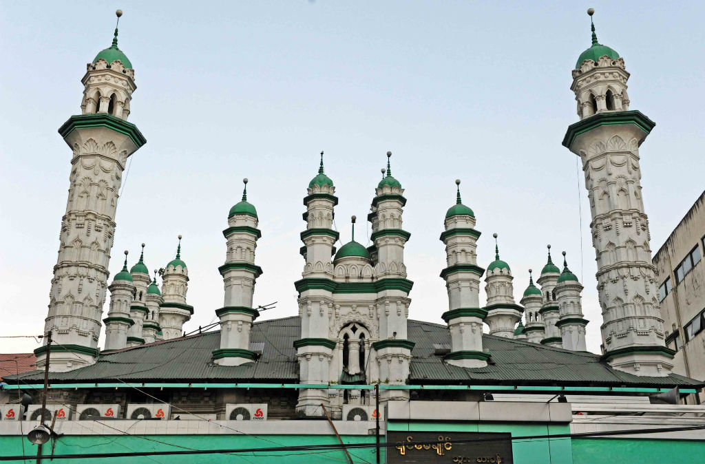 The Masedi Khan Jamah Mosque stands alone in Tamwe Township as one of the stunning buildings in the area, featuring more than twenty intricate minarets and similarly designed domed towers protruding from an otherwise very modest zinc roof and a façade hidden behind a strip of typical shops.