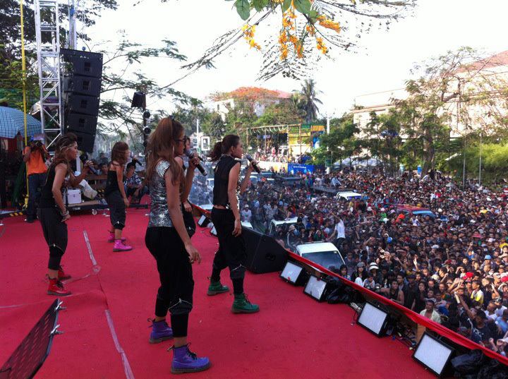 Girl band MeNMaGirls perform at Thingyan festivities in 2012 in Yangon. PHOTO/WIKICOMMONS