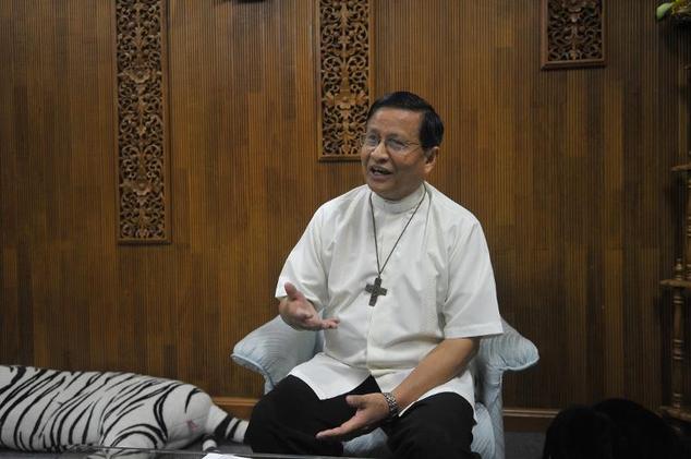 Photo: Cardinal Charles Maung Bo of Myanmar speaks during an interview at his office in Yangon on January 6, 2015 / Soe Than Win / AFP
