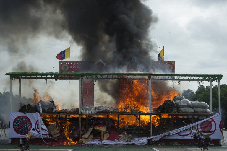 Over half a ton of opium and 80 kilograms of heroin was torched along with 768 kilograms of methamphetamines and 10 million other stimulant pills, a police official told AFP, adding the haul was worth around $57 million.