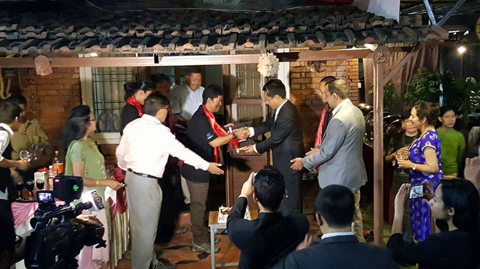 Photos posted on the Facebook page created by the Htoo Foundation, which sponsored the attempt, showed the team of three being congratulated on Monday by the Myanmar ambassador to Nepal.