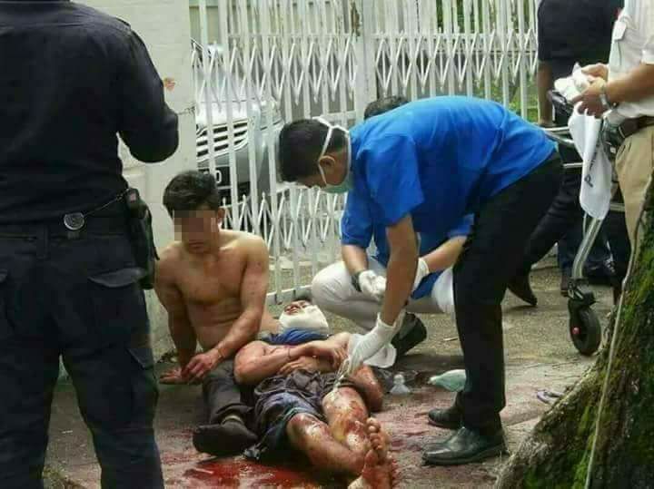 The victim was seriously injured but survived, and was taken to Penang Hospital for Treatment. The culprit is being detained at a police station in Jalan Patani.