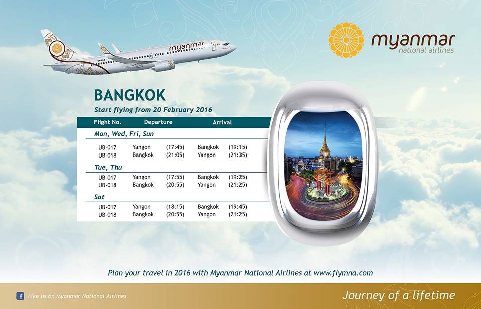 Good news for frequent travelers and visa runners: Myanmar National Airlines launched its first flights to Bangkok over the weekend.