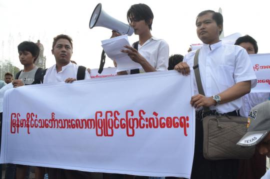 Myanmar seamen are obstructed from attaining officer ranks by the K20 million ($15,500) fee for the required exam, and they also suffer discrimination at the hands of exam proctors. In other countries, the protestors said, the test is computerized.