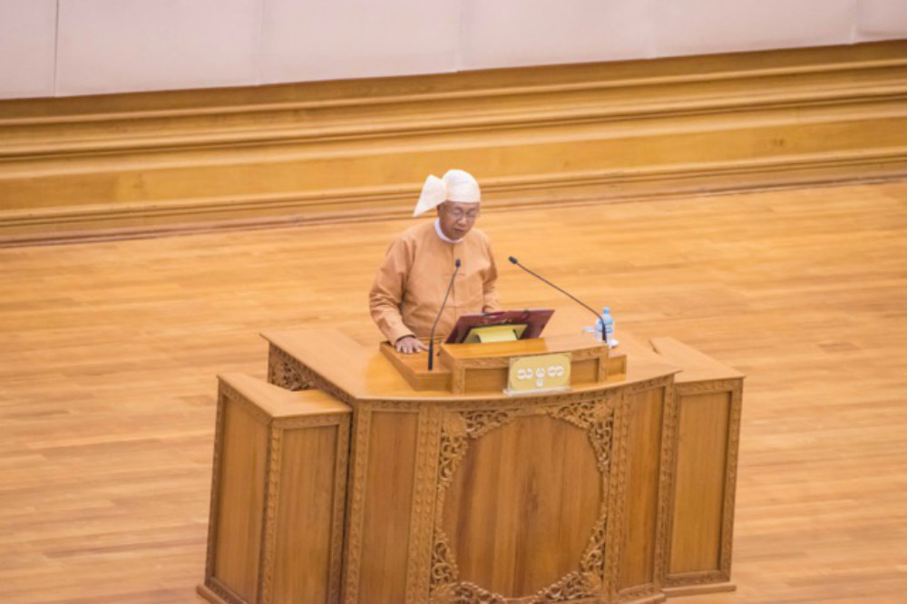 Dear speaker, MPs, distinguished guests and citizens, I want to say that I am very glad that I was selected as president by the Union Parliament [and it] is a very historic event. As I became president, I need to be responsible for the Union Parliament, second parliament and the cabinet, which is a result from the 2015 November Election, formed by the NLD which is led by Aung San Suu Kyi. This government will work to have a constitution which prioritizes peace, to have a democratic federal state and national reconciliation and will work to have better living standards.