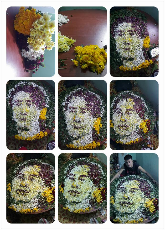And as his way of commemorating the occasion, one young man has created two portraits of the Lady out of flowers and clothing. Yes, as in, actual flower petals, and items of clothing he has in his closet.