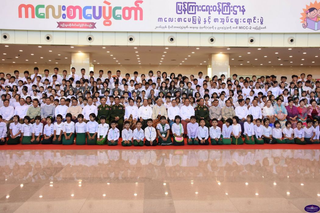 President Htin Kyaw was brought to tears during his speech at the Children’s Literature Festival on Saturday in Naypyidaw.