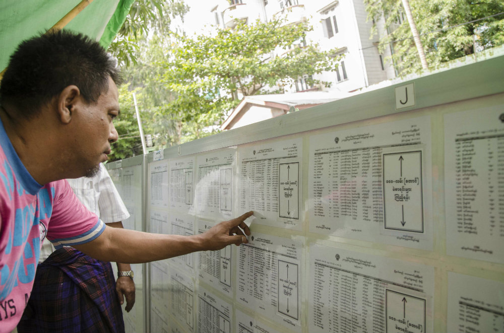 Photo of man checking voter list in Yangon in July / Aung Naing Soe / Coconuts Yangon