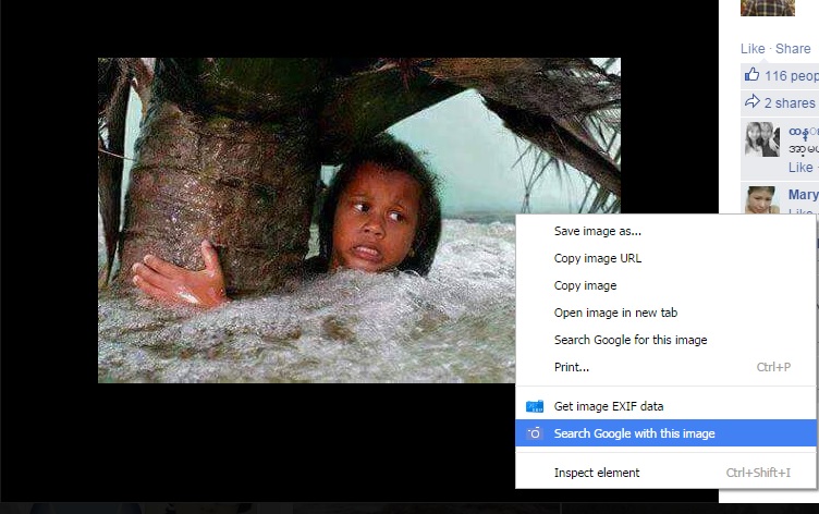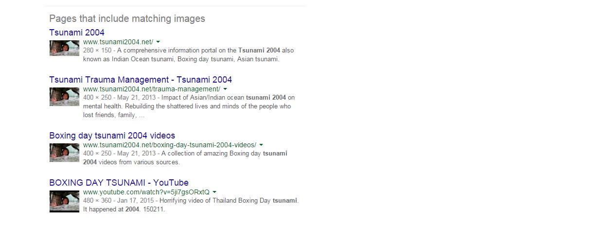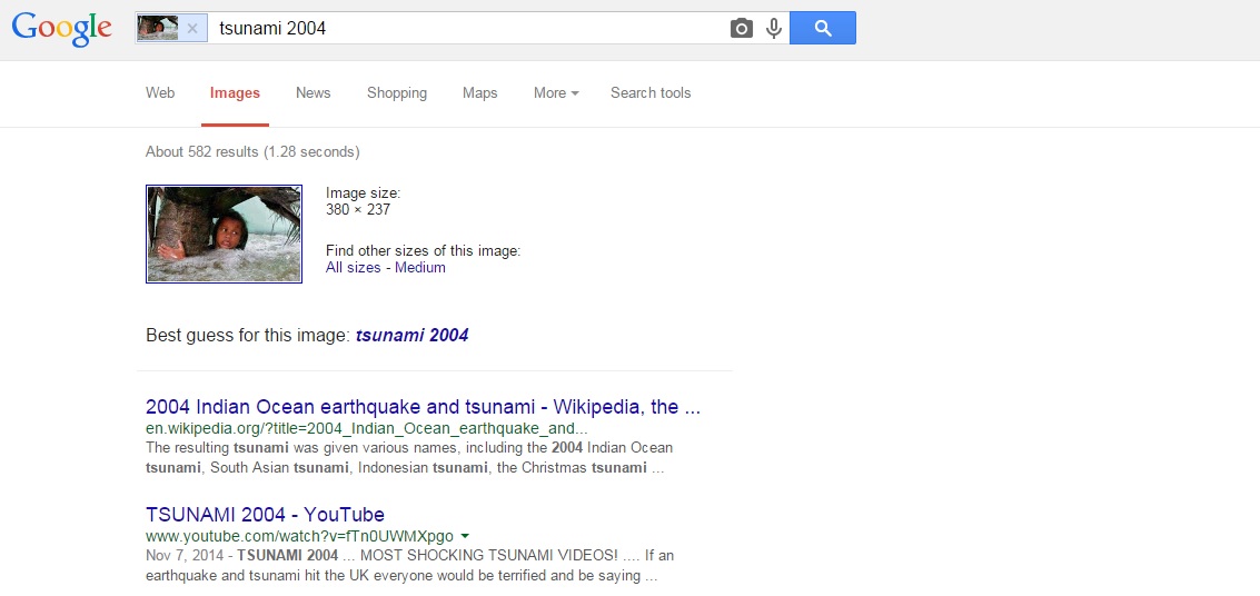 It’s actually from the Indian Ocean tsunami in 2004. All you need to do is download an extension for Google called ‘Search by Image’ which lets you use the search engine to look for any picture on the web.
