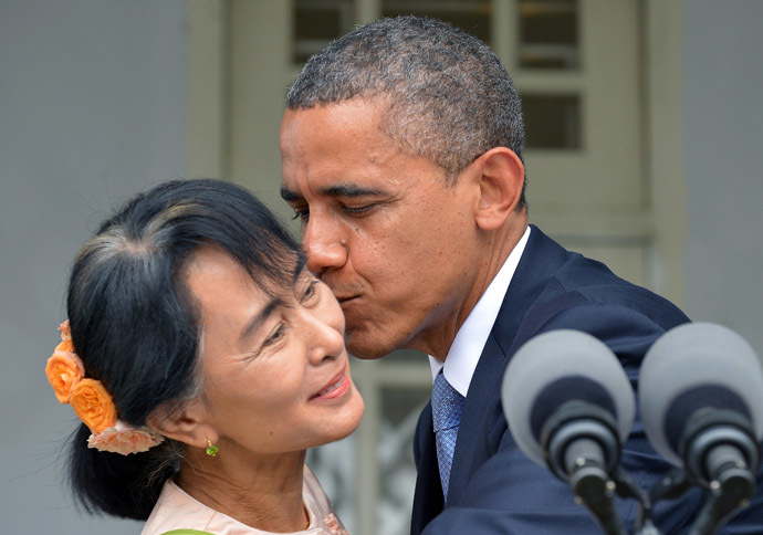 Obama flouted the country’s cultural norms when he kissed Suu Kyi on the cheek in 2012 and 2014.