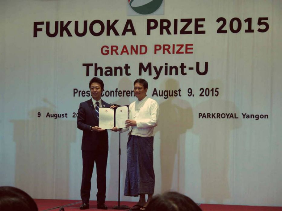 Yangon Heritage Trust founder and chairman Thant Myint-U received the annual Fukuoka Prize’s top award yesterday during a ceremony at the Park Royal Hotel.