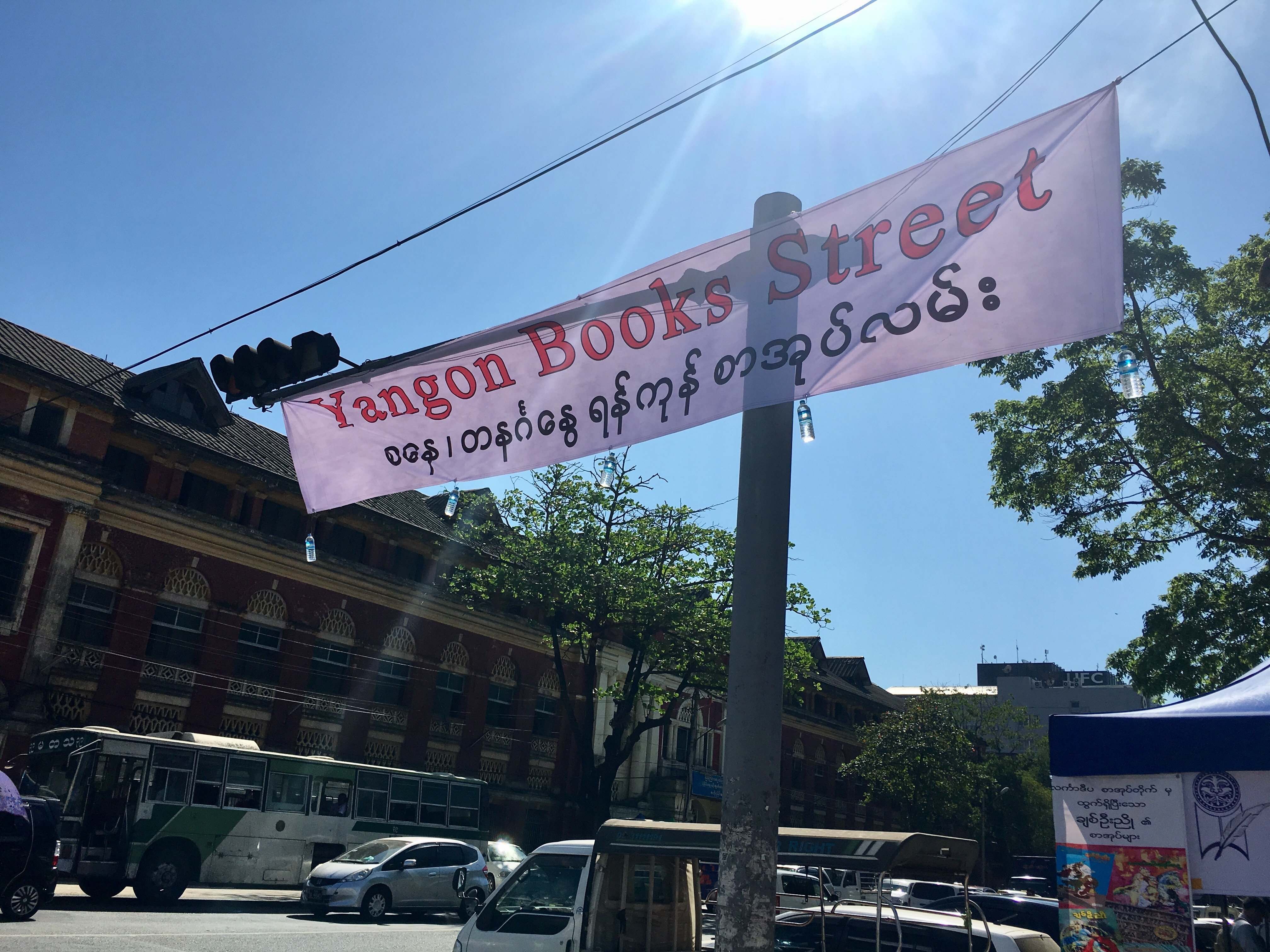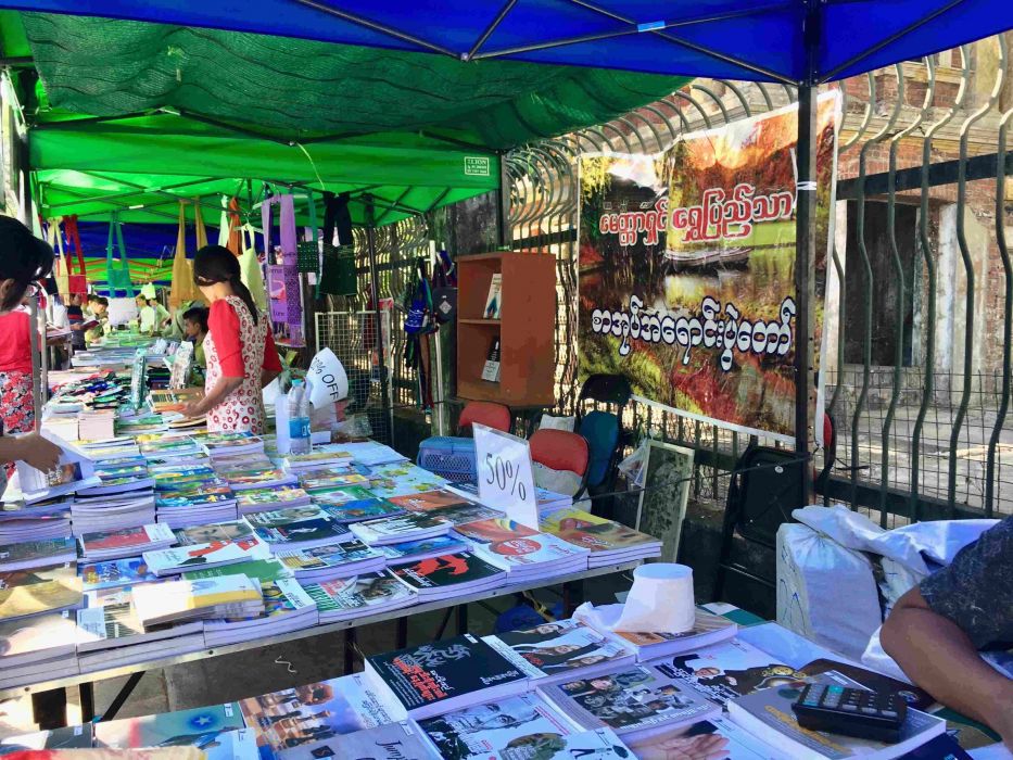 Yangon’s first official book market opened up on Thein Phyu Street this past Saturday, although according to the giant hanging banner, the market is officially known as the ‘Yangon Books Street’ and not, well, a market.