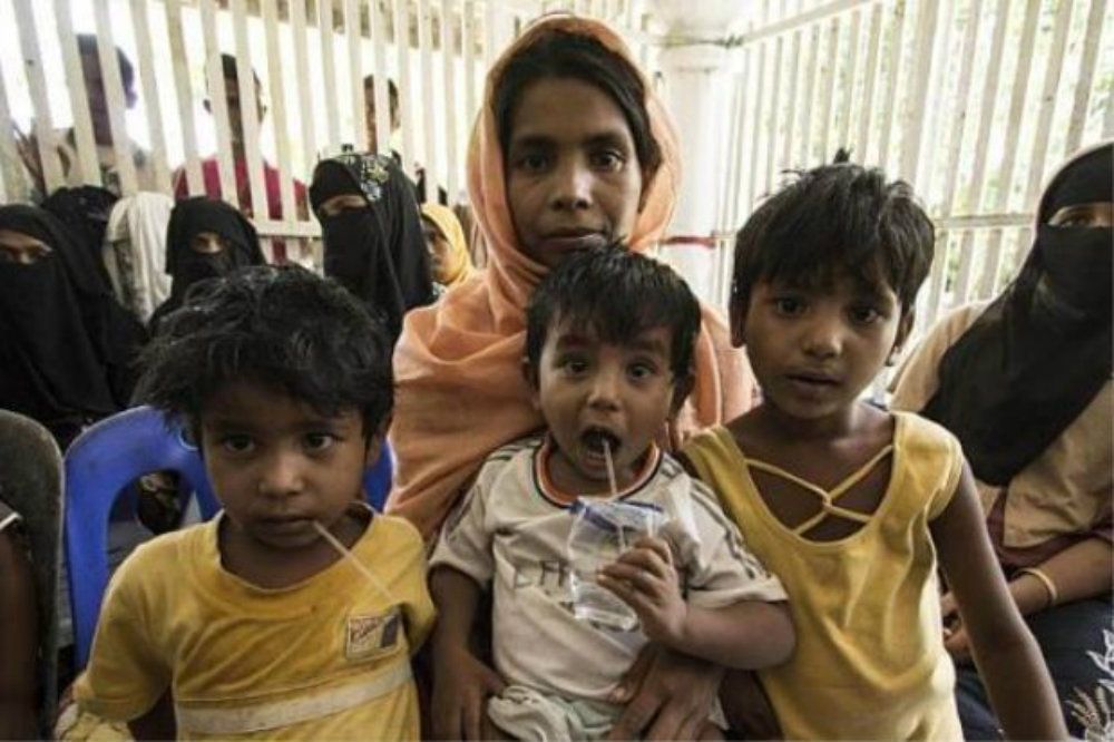 Photo/AFP: Migrant women and children from Myanmar and Bangladesh wait at a shelter in Matang Raya village, Baktya, in northern Aceh on May 10, 2015.