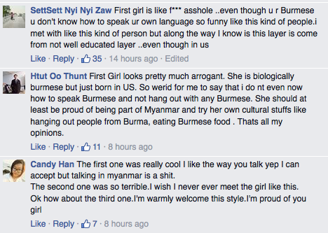 Next up is “Americanized Burmese” girl, who switches between English and Burmese apologetically.