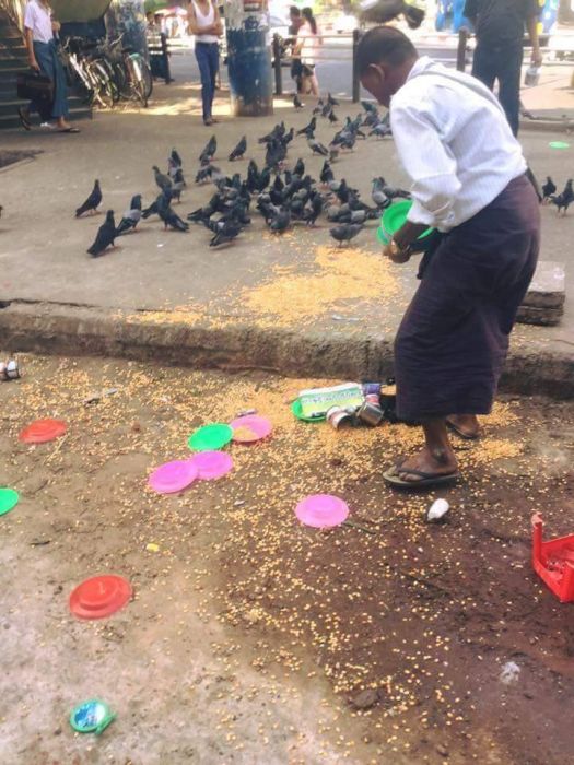 Judging by the photos, the man sold bird food that people could buy by the plate and feed to the flocks of pigeons that congregate downtown.