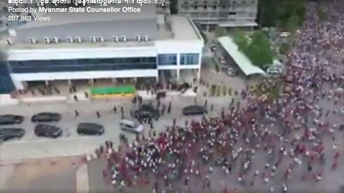 But this drone footage apparently shot by Thai PBS gives an idea of how nearly impossible (and maybe even dangerous) it would have been for her to meet with everyone present as crowds surged towards the barricades leaving police incapable of maintaining a semblance of order and issuing frantic hand gestures to GET BACK.