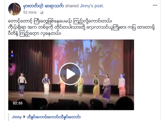 A video of a troupe of “foreigners” performing a Thingyan dance in traditional Myanmar dress has gone viral, racking up almost 30,000 shares in a week.
