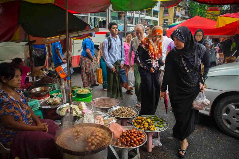 Muslim women in a market in downtown Yangon (PHOTO:- Hkun Lat/Myanmar Now)