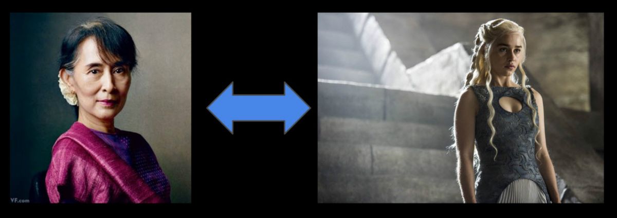 The writer goes on to compare Aung San Suu Kyi to the Mother of Dragons and Thura Shwe Mann to Tyrion Lannister (you know, because they both fall out of favor, though as far as we know Shwe Mann never shot anybody with a crossbow).