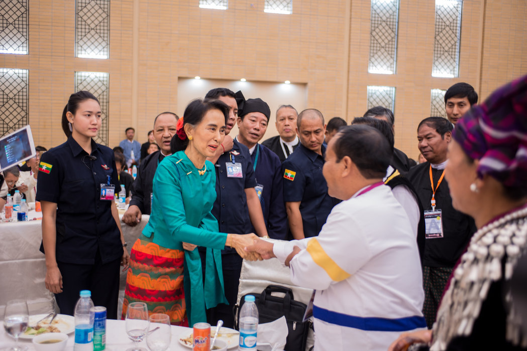 Daw Aye Aye Win, the director of the Ministry of Industry, told reporters in Naypyidaw yesterday: “[Suu Kyi] gave the design and measurement of the glass and explained where the glass should be. The Union minister is implementing the design. A lot of people like it. It was designed by her.”